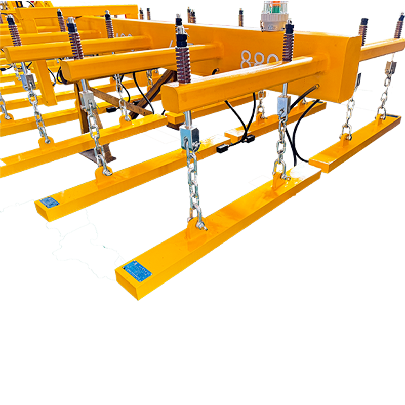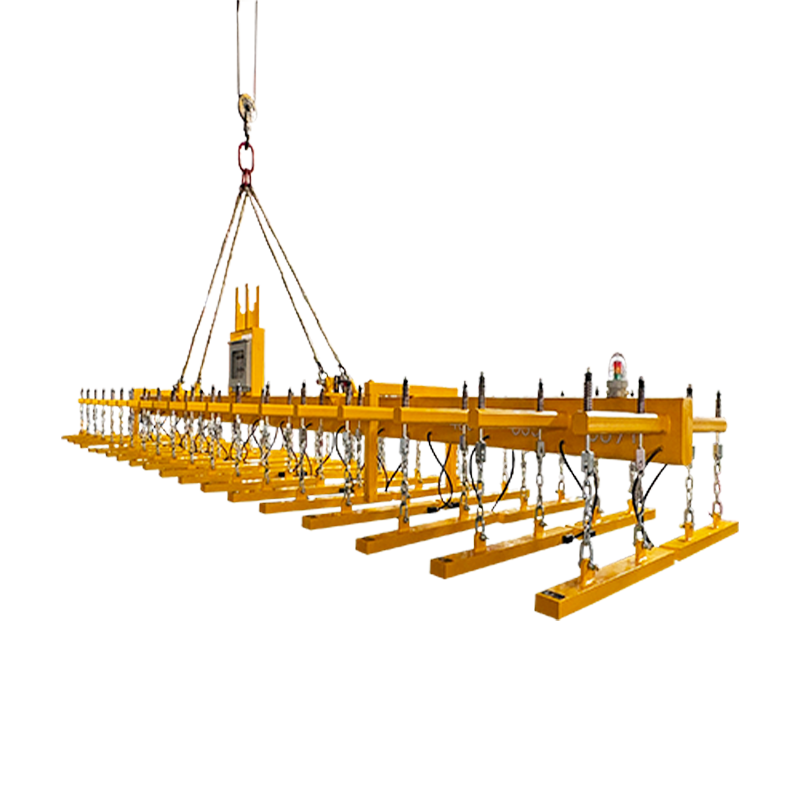产品介绍:电永磁吊具多连吊,采用先进磁力技术,实现38件电永磁吸盘同步吊装,安全稳定,操作智能简便,节省人力,大幅提高生产效率与作业安全性。