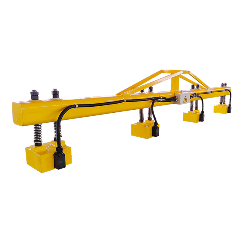 产品介绍:钢板、型材吊运电永磁吊具专为吊运钢板、型钢设计。考虑到长钢板吊运可能出现弯曲变形而影响安全吊运,在吊运这类钢板时,我们通常使用多台联吊。根据钢板的规格范围 ( 长、宽、厚 ) 及行车的起重能力,我们会选用不同规格的起重电永磁铁。