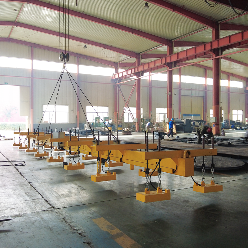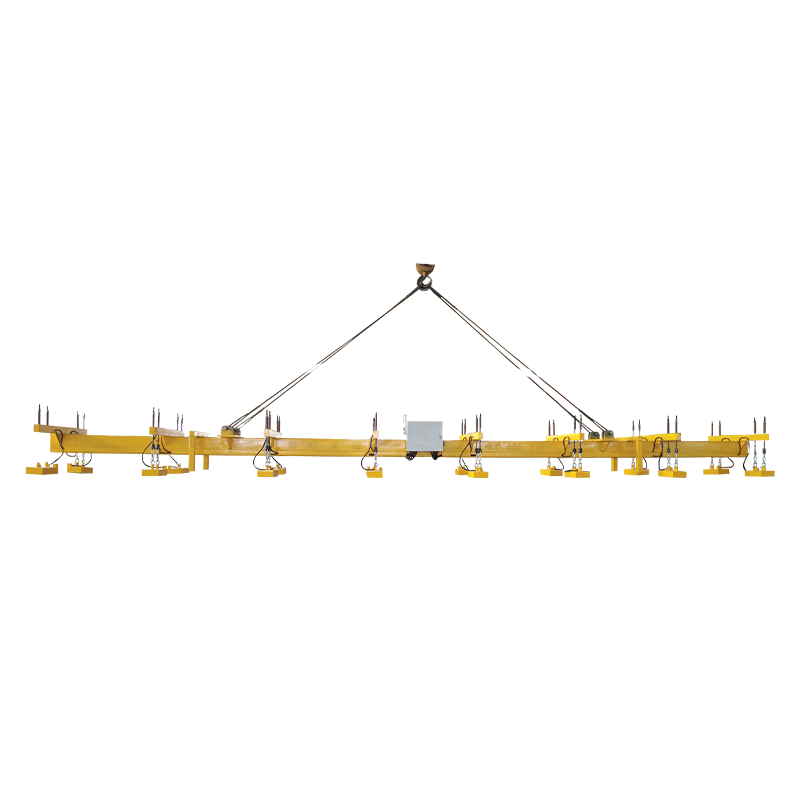 宽厚钢板电永磁吊具专为吊运中厚板、宽厚板设计。考虑到长钢板吊运可能出现弯曲变形而影响安全吊运,在吊运这类钢板时,我们通常使用多台联吊。根据钢板的规格范围 ( 长、宽、厚 ) 及行车的起重能力,我们会选用不同规格的起重电永磁铁。