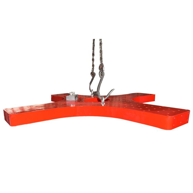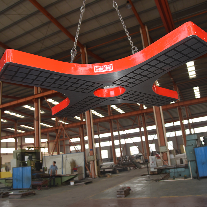 产品介绍:立卧钢带卷吊运电永磁吊具专为吊运中厚板、宽厚板设计。考虑到长钢板吊运可能出现弯曲变形而影响安全吊运,在吊运这类钢板时,我们通常使用多台联吊。根据钢板的规格范围 ( 长、宽、厚 ) 及行车的起重能力,我们会选用不同规格的起重电永磁铁。