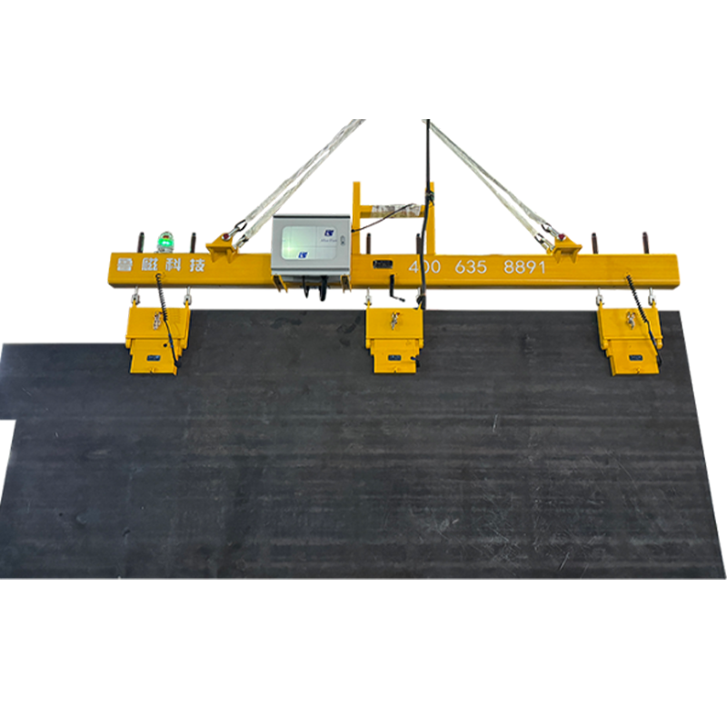 多种方式吊运电永磁吊具可侧吊平吊,专为吊运中厚板、宽厚板设计。考虑到长钢板吊运可能出现弯曲变形而影响安全吊运,在吊运这类钢板时,我们通常使用多台联吊。根据钢板的规格范围 ( 长、宽、厚 ) 及行车的起重能力,我们会选用不同规格的起重电永磁铁。