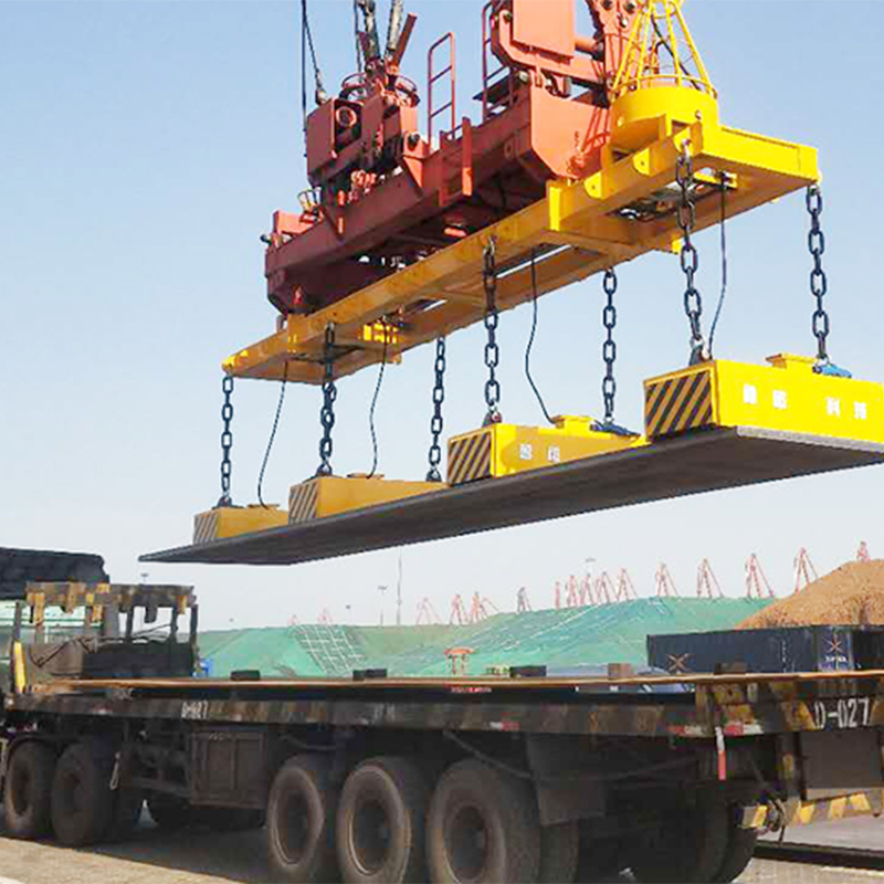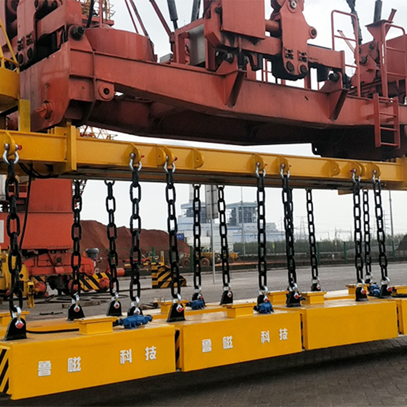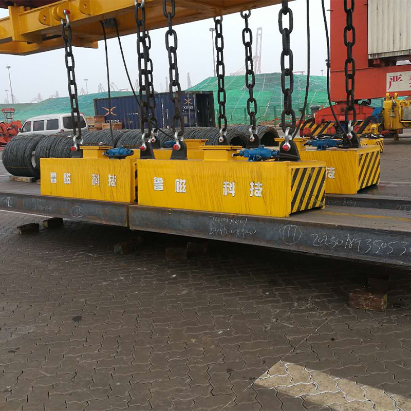 起重电磁铁是以被吸物作为衔接的一种特殊电磁铁,是多行业吊运钢铁等导磁性物料不可缺少的起重工具。鲁磁科技经过多年对起重电磁铁的推广应用,目前分为两大系列:废钢类(挖机用、叉车用、行车用、龙门吊用、装载机用、打捞用等)和联吊类(方坯、梁坯、板坯吊运用、高速线材(盘圆)专用型、捆扎螺纹钢、型钢专用、吊运管坯、钢管用、吊运重轨、型钢用、吊运钢板用、吊运立、卧钢带卷用、吊运厚板专用电磁铁、翻转、侧吊用等)。